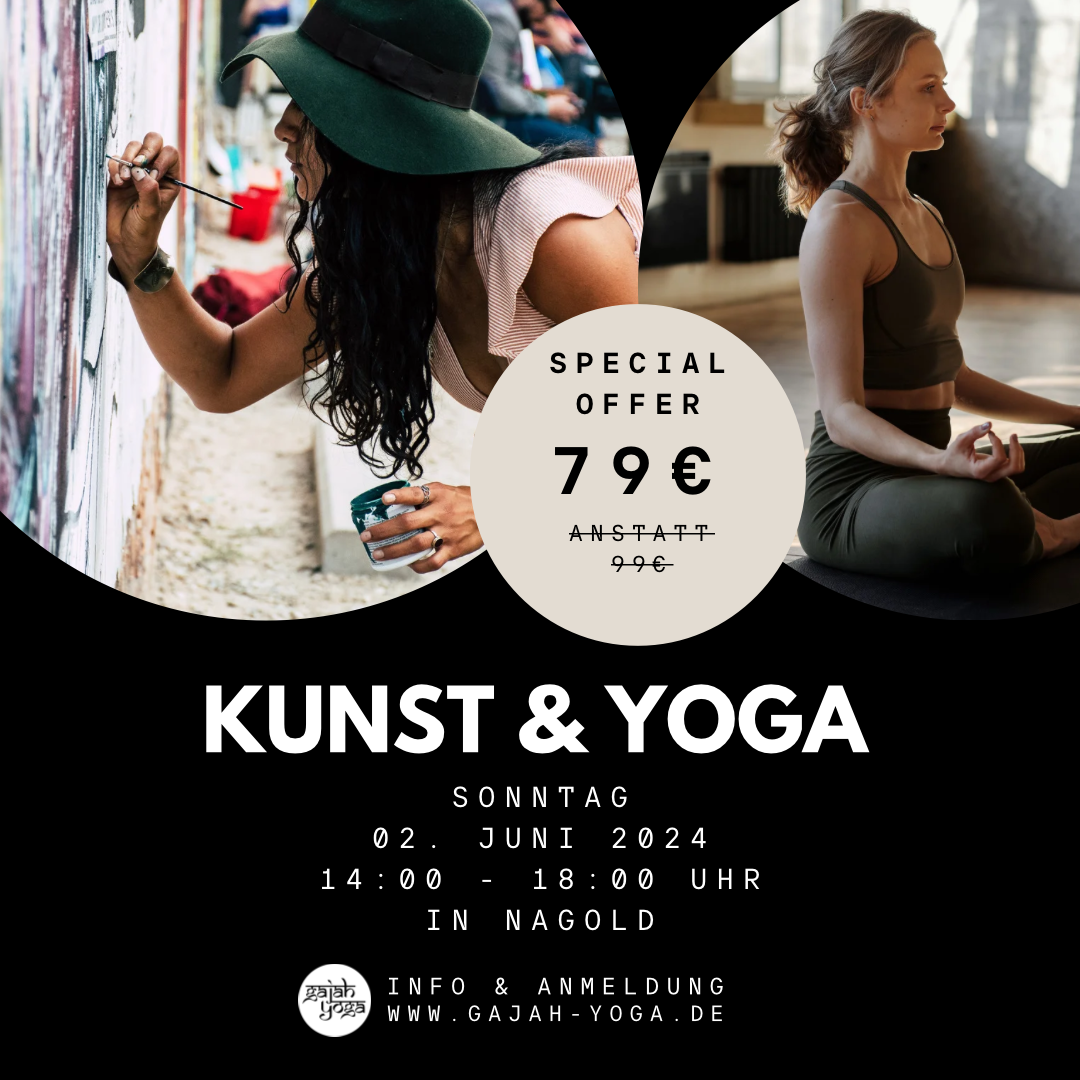 Was verbindet Kunst & Yoga? Es ist nicht nur die Bewegung beim Malen auf der Leinwand und die Bewegung auf der Matte. Bei beidem liegt der Fokus bei DIR! Wir beginnen unsere Gedanken ruhen zu lassen. Du wirst bei dir selbst ankommen. Es wird nicht vorausgesetzt, dass du Vorkenntnisse hast.
